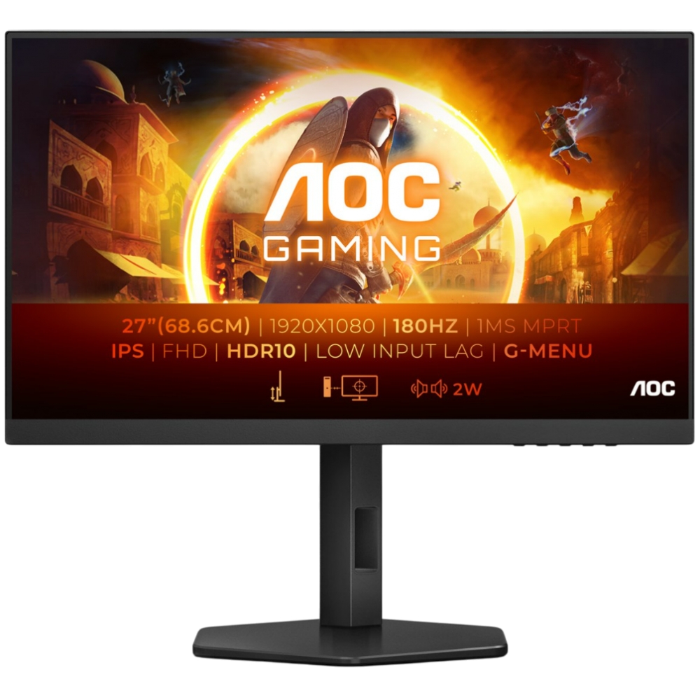 Der AOC Monitor Gaming 27G4X überzeugt durch ein 27 Zoll großes Full HD IPS-Display mit einer Auflösung von 1920 x 1080 Pixel. Mit einer Bildwiederholrate von 180 Hz und einer Reaktionszeit von 0,5 ms bietet er flüssige Bilddarstellung für anspruchsvolle Spiele. Die integrierten 2x 2-Watt-Lautsprecher sorgen für eine einfache Tonwiedergabe. Das elegante Schwarz unterstreicht das moderne Design, ideal für Gaming-Enthusiasten, die Wert auf Qualität und Performance legen.