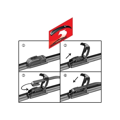 Die neuartige Befestigungstechnik mit dem Quick-Clip-Adapter lässt die flachen Aerotwin-Wischer problemlos an den üblichen Hakenarmen einrasten. Dazu den Wischarm einfach in den Adapter einhaken – der Wischblattwechsel bleibt genauso einfach wie bisher. Bosch Wischblätter sind als Qualitätsprodukt ein fester Begriff - dies bekräftigen eine Vielzahl von Wischblatt-Tests, aus denen Bosch Wischblätter als Sieger hervoringen, wie z. B. Auto-Motor und Sport, ADAC motorwelt, AutoZeitung, ACE oder AutoBild.