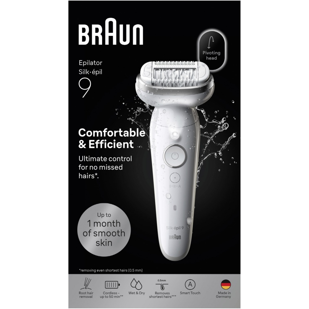 Der Braun Silk·épil 9 Epilierer sorgt für bis zu 1 Monat glatte Haut – jederzeit und komfortabel. Mit einem breiten, schwenkbaren Kopf folgt dieser Wet & Dry Epilierer mühelos deinen Konturen. Dieser kabellose Braun Epilierer ist mit 40 MicroGrip-Pinzetten ausgestattet, die Haare erfassen können (ab 0,5 mm), die Wax nicht erreicht . Genieße salon-glatte Haut mit ultimativem Komfort dank des präzisen und bequemen Griffs. Verabschiede dich von der lästigen Wartezeit auf das Nachwachsen der Haare, die bei Haarentfernungsmethoden wie Waxing erforderlich ist. Der Silk·épil 9 ist für deinen Komfort konzipiert und macht aufwendige Reinigungen oder Beautysalon-Termine überflüssig. Ein hilfreicher Tipp: Epiliere in der Badewanne oder Dusche unter warmem Wasser, um das Schmerzempfinden noch weiter zu minimieren.