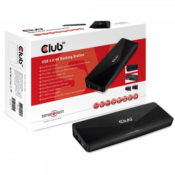 Die universelle Club 3D USB 3.0 4K Docking Station ist für all Ihre Konnektivitätsanforderungen entwickelt worden. Mit den eingebauten USB 3.0 Ports ermöglicht die Docking Station Ihnen Super Speed Datenübertragung (bis zu 5 Gbps) mit Ihren USB Peripherieprodukten zu genießen. Dabei wird auch das Kabelgewirr reduziert und der Datentransfer und die Anschlußmöglichkeiten für Ihr Notebook oder Tablet über nur einen USB 3.0 Uplink Port deutlich verbessert.