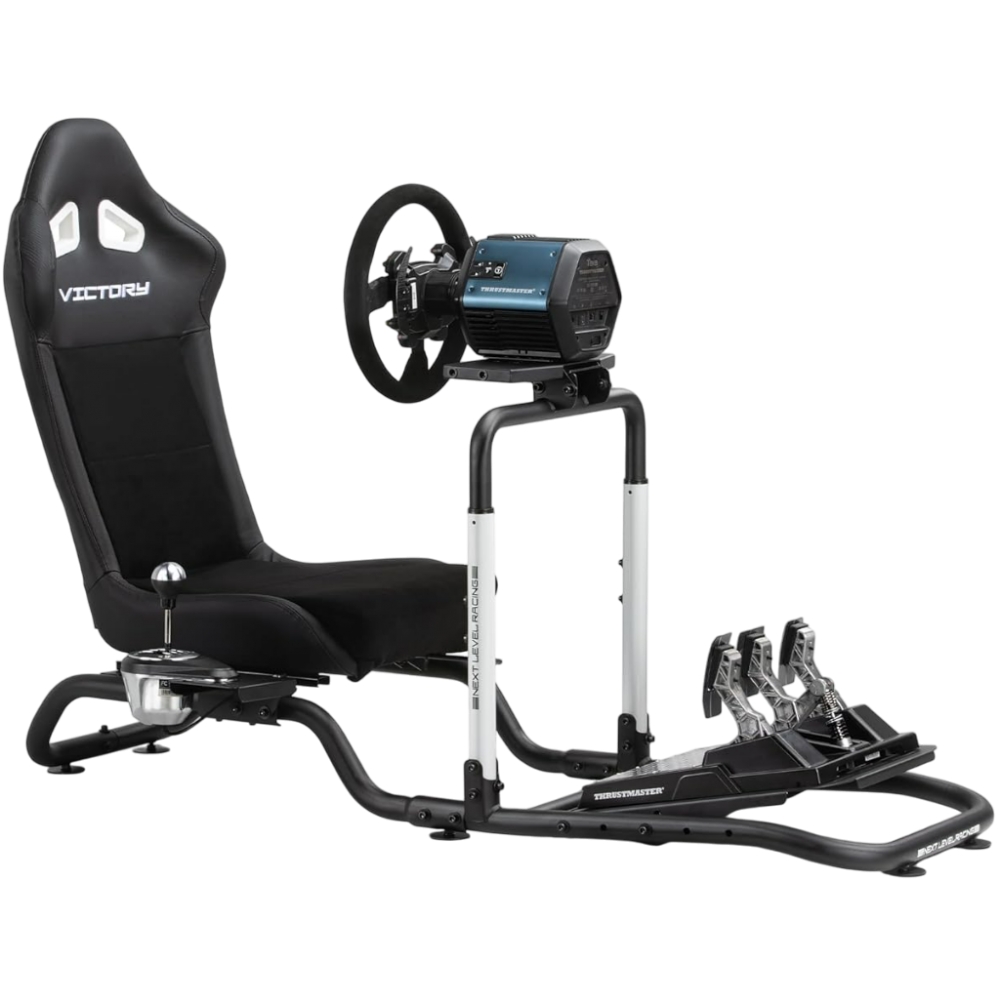 Der Rennsitz Next Level Racing VICTORY bietet eine breite Kompatibilität, die den Anforderungen der meisten Rennbegeisterten gerecht wird.   Das Cockpit unterstützt Lenkräder mit einem Drehmoment von bis zu 10 N.m und ist mit Modellen führender Marken wie Logitech, Thrustmaster oder Fanatec kompatibel. Dank anpassbarer Platten können verschiedene Pedaltypen angeschlossen werden, von Basismodellen bis hin zu fortschrittlichen hydraulischen Versionen. Der Schalthebelhalter wurde so konzipiert, dass er sowohl auf der rechten als auch auf der linken Seite montiert werden kann, was ihn für Rechts- und Linkshänder gleichermaßen geeignet macht. Diese Vielseitigkeit sorgt dafür, dass das Cockpit mit dem meisten verfügbaren Rennzubehör vollständig kompatibel ist.