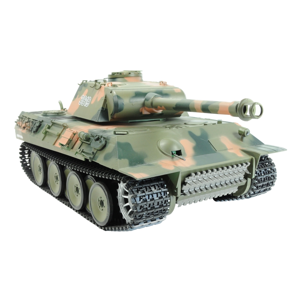 Funkgesteuerter Panzer mit Rauch & Sound inkl. Fernsteuerung, Akku ,Ladegerät und Zubehör! Mit starken Motoren, sehr gutem Getriebe und einer hervorragenden Qualität! Eine detailgetreuen Nachbildung des Originals. Dieser ferngesteuerte Panzer macht einfach Spaß. Und dass zu einem äußerst günstigen Preis! Durch seinen Kettenantrieb und Einzelradaufhängung fährt der Panzer sehr gut im Gelände, selbst vor dicken Teppichen oder bei Steigungen macht er nicht halt.