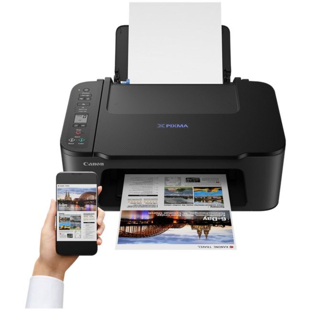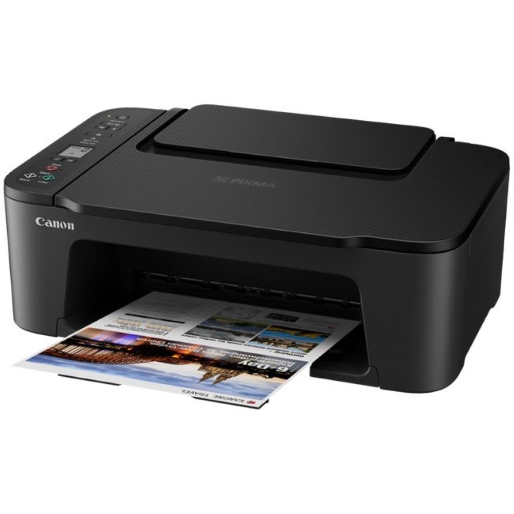 Der PIXMA TS3550i ist ein kompaktes Multifunktionssystem, das neben einer Tintenstrahl-Druckfunktion auch einen Flachbettscanner und eine Kopierfunktion beinhaltet. Neben gestochen scharfen Dokumenten erstellt der TS3550i Fotodrucke mit lebendigen Farben. Dabei beherrscht er auch den Randlosdruck für die Formate 10x15, 13x18 und 13x13. Flexible Verbindungsmöglichkeiten zeichnen den PIXMA TS3550i aus: Er kann per USB an einen PC oder ein Notebook angeschlossen werden, verfügt aber auch über eine WLAN-Schnittstelle, die den Direktdruck von Mobilgeräten ermöglicht. Das Drucksystem mit zwei Druckköpfen (schwarz und farbig) lässt sich optional mit XL-Patronen betreiben. Dieses Gerät ist kompatibel zu Pixma Print Plan und kann optional mit diesem Tinten-Abonnementservice genutzt werden.
