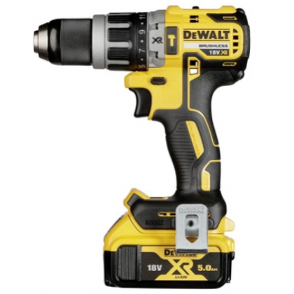 Das Akku-Kombopack DCK2080P2T-QW von DeWalt besteht aus dem Akku-Schlagbohrschrauber DCD796 und dem 125mm Akku-Winkelschleifer DCG405. Der Akku-Schlagbohrschrauber DCD796 ermöglicht höhere Leistung, kompaktere Abmessungen und eine 57% längere Laufzeit pro Akku-Ladung. Die neueste Generation bürstenloser Motor-Technologie sorgt für höhere Lebensdauer, und die äußerst kompakte und ausbalancierte Bauweise mit geringem Gewicht erleichtert das Arbeiten. Das optimal abgestimmte 2-Gang-Vollmetallgetriebe gewährleistet perfekte Kraftübertragung, und das zuschaltbare Schlagwerk für schwere Bohrarbeiten in Stein und Mauerwerk machen den Schlagbohrschrauber DCD796 vielseitig einsetzbar. Das 13mm Schnellspann-Bohrfutter ist aus Vollmetall gefertigt. Die leicht dosierbare Schalterelektronik ermöglicht exaktes Anbohren und präzises Schrauben, und das ergonomische Design mit vollgummiertem Handgriff sorgt für ein Maximum an Sicherheit und Arbeitskomfort. Der Akku-Winkelschleifer DCG405 bietet einen Scheibendurchmesser von 125mm und eine max. Leerlauf-Drehzahl von 9.000 U/min. Die Epoxyd-Harz-gepanzerten Wicklungen schützen den Motor vor abrasiven Staubpartikeln, und das optimierte Lüftersystem kühlt den Winkelschleifer und die Elektronik effektiv während der Anwendung. Das Perform & Protect System besteht aus einer elektronischen Bremse, die die Scheibe zuverlässig in Sekundenschnelle (<2 Sekunden) stoppt, und der elektronischen Kupplung, die das Gerät bei Blockieren automatisch abschaltet, und so Anwender und Maschine schützt. Diese Kombination aus elektronischer Kupplung und Bremse minimiert die Gefahren bei Kickbacks noch effektiver.
