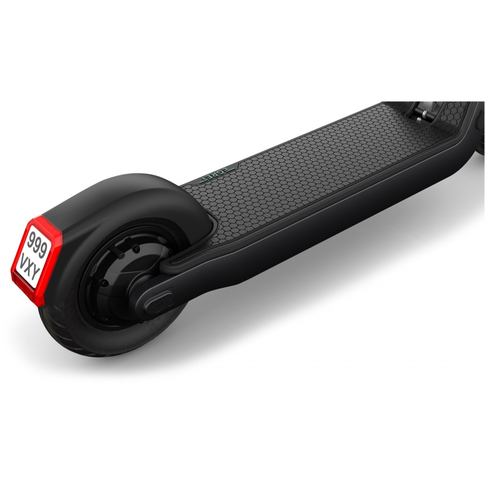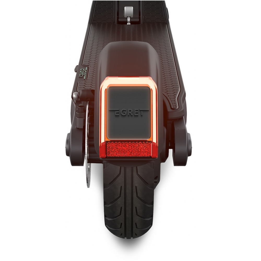 Das LED-Rücklicht lässt den Egret Pro zum Blickfänger werden. Das Bremslicht zeigt Nachfolgern an, dass du langsamer wirst. Das Kennzeichen ist zentral im Rücklicht integriert.