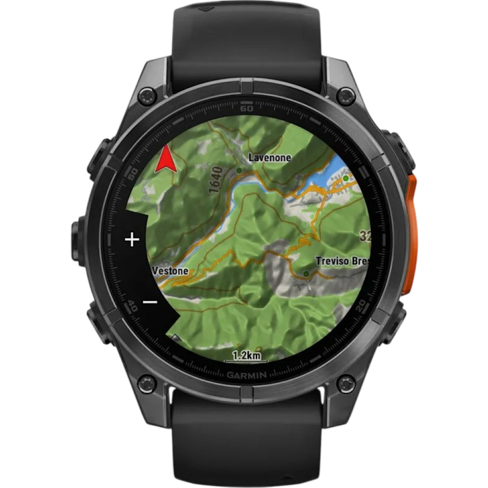 Mit dem eingebauten GPS-Modul geht Ihnen zudem die Orientierung nicht verloren. Auf dem 3,556 cm Display werden die Bildschirminhalte mit einer Auflösung von 454 x 454 Pixeln übersichtlich dargestellt. Die Garmin fenix 8 (47mm) hat die Maße 4,7 x 4,7 x 1,38 cm.