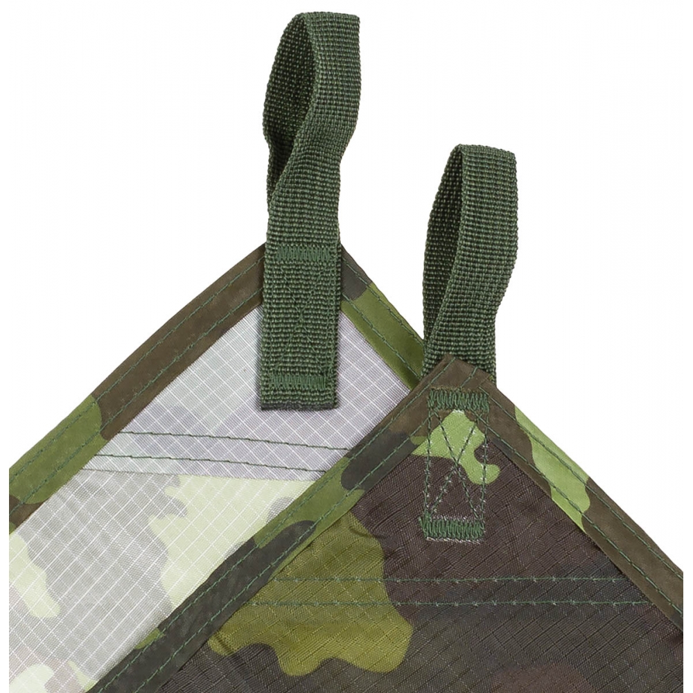 Die Mehrzweckplane Tarp Extrem mit einer Grösse von 300x300cm von MFH ist umlaufend und mittig mit Befestigungsschlaufen versehen. Durch die Schlaufen lässt sich das Tarp für nahezu unendlich viele Einsatzmöglichkeiten bei jedem Gelände aufbauen. Durch eine zusätzliche Befestigungsschlaufe mittig, kann das Tarp sogar in Zeltform aufgebaut werden. Die Mehrzweckplane ist aus PU-beschichtetem Ripstop-Polyester-Gewebe gefertigt, welches das Material extrem reißfest bei maximaler Gewichtseinsparung macht. Durch die hervorragende Reißfestigkeit kann die Multifunktionsplane neben den typischen Einsatzzwecken wie Abdeckplane, Schutzzelt usw. sogar auch als Hängematte oder Trage verwendet werden. Durch die PU -Beschichtung ergibt sich eine Wassersäule von 2000mm, welches als Regenschutz hervorragend dicht hält.