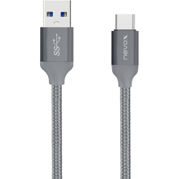 - nevox 1480 - Datenkabel - USB C zu USB 3.0 Kabel - 2 m - Nylon - silbergrau