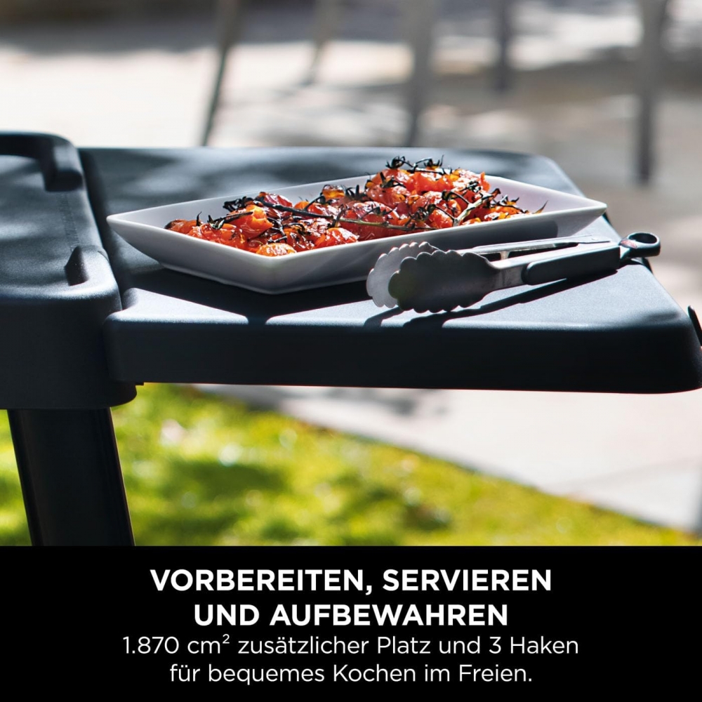 Dieser Beistelltisch bietet Ihnen zusätzlichen Platz zum Zubereiten, Aufbewahren und Servieren direkt neben dem Grill-Geschehen.