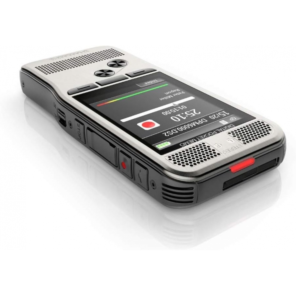 Das Pocket Memo bringt Diktierlösungen auf ein vollkommen neues Niveau. Zwei Mikrofone liefern ausgezeichnete Tonqualität für Ihre Diktate. Das robuste und dennoch leichte Edelstahl-Design bietet eine perfekte Ergonomie für das Arbeiten über längere Zeiträume. Energiesparfunktionen und ein hochleistungsfähiger Li-Ion-Akku ermöglichen eine verlängerte Aufnahmezeit und ein einfaches Aufladen über eine standardmäßige USB-Verbindung.