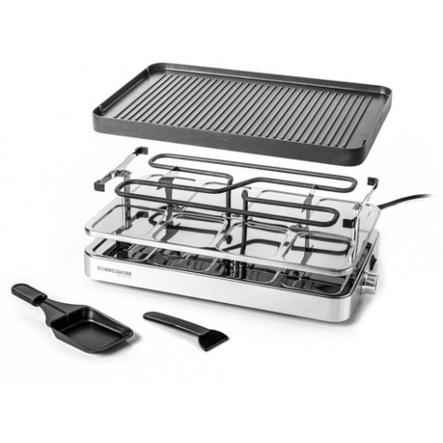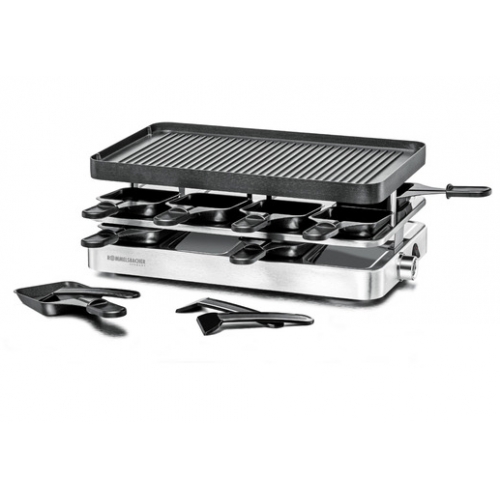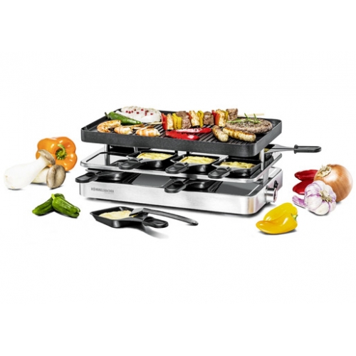 - Rommelsbacher RC 1400 Edelstahl, Raclette, Antihaft,8 Pfännchen,Aluminiumgehäuse