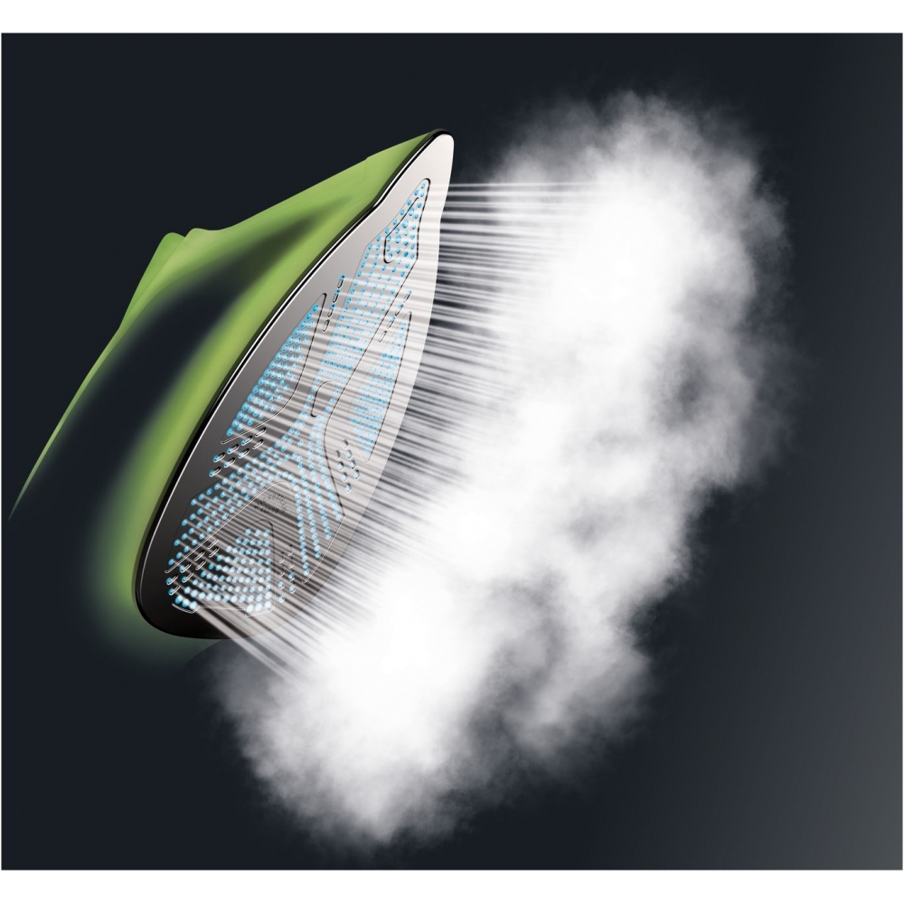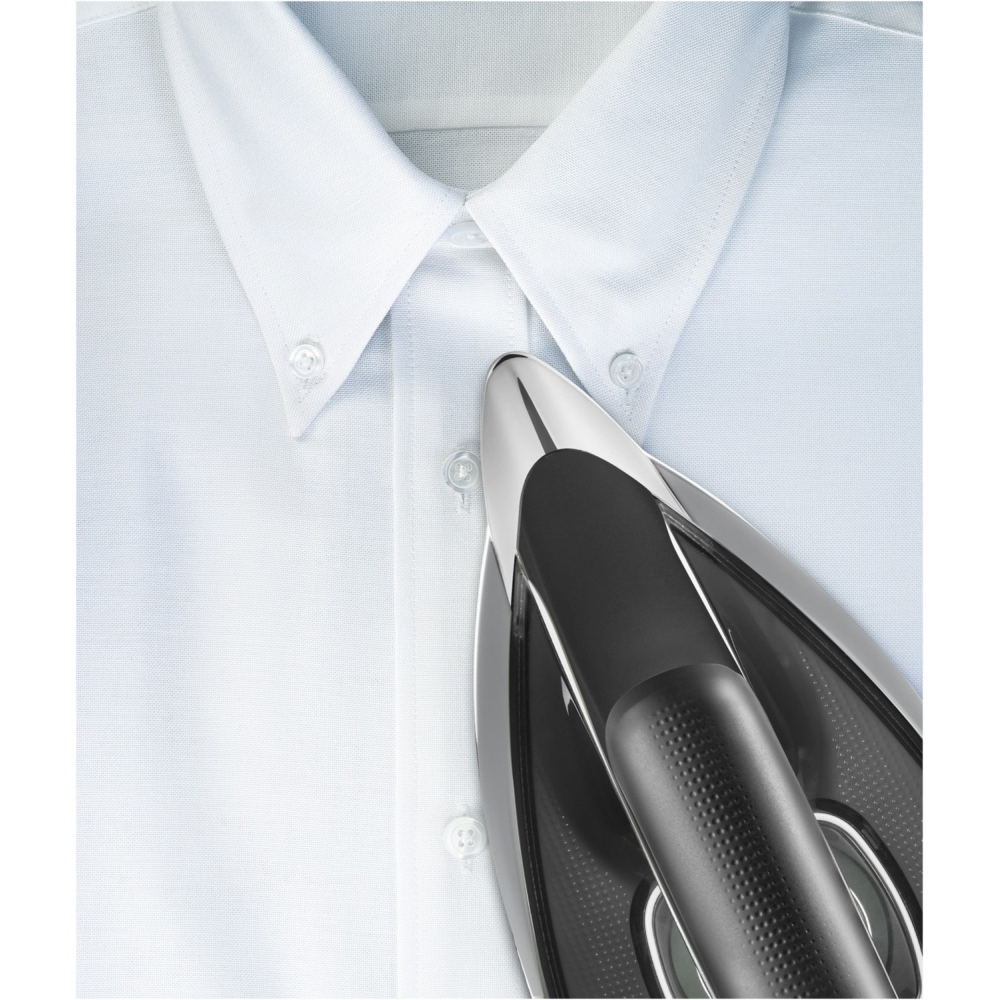 Dauerhafte Hochdruckdampfleistung mit einem Durchsatz von 120 g/Min. sorgt stets für perfekte Ergebnisse, herausragende Faltenentfernung wird kinderleicht.