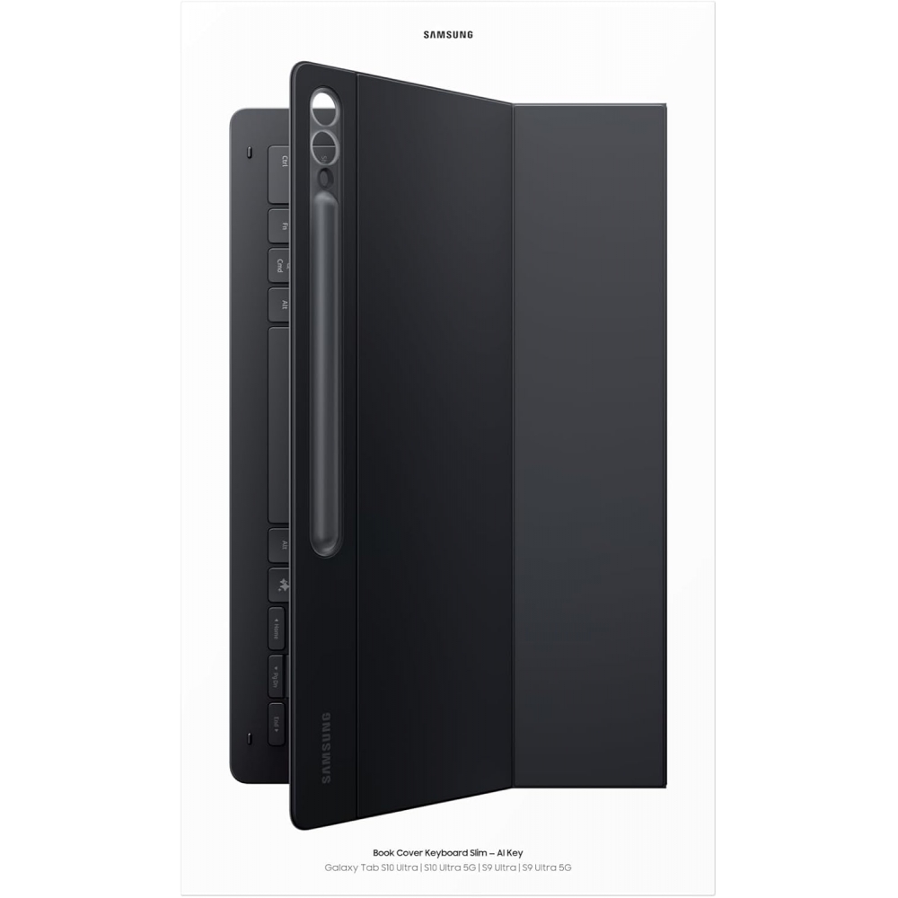 Das einteilige Book Cover Keyboard Slim von SAMSUNG mit vollwertiger QWERTZ-Tastatur und Anschluss über POGO-Pin passt optimal an das Samsung Galaxy Tab S10 Ultra | S9 Ultra. Mit der AI-Taste kamm man auf den KI-gestützten Assistenten zugreifen: Einfach auf die entsprechende Taste tippen und dem KI-Assistenten die Bearbeitung der Anfrage überlassen. Die Tastatur mit Funktionstasten kombiniert mit dem DeX-Modus ermöglicht ein PC-ähnliches Erlebnis mit nur einem einfachen Tastendruck. Mit Wireless Keyboard Sharing kann man sich ganz einfach mit anderen kompatiblen Galaxy Geräten verbinden und problemlos zwischen ihn wechseln, auf ihnen schreiben oder navigieren. Das schlanken und leichten Book Cover Keyboard Slim lässt sich schnell und einfach durch die Magnete in der Rückseite des Covers anbringen. Außerdem verfügt es über eine extra Aufbewahrungsmöglichkeit für den S Pen (separat erhältlich), sodass man ihn schnell zur Hand hat und er so nicht so schnell verloren geht.