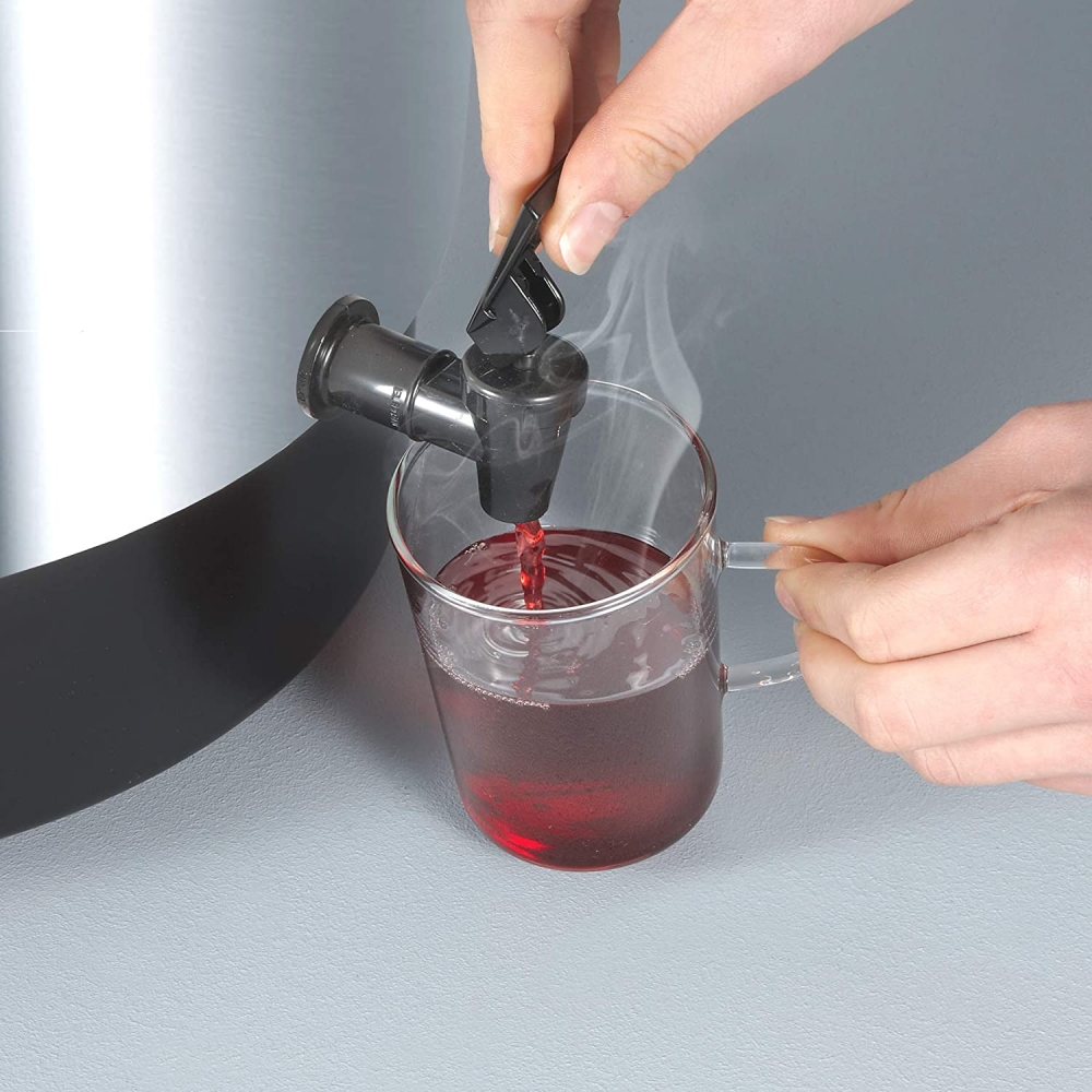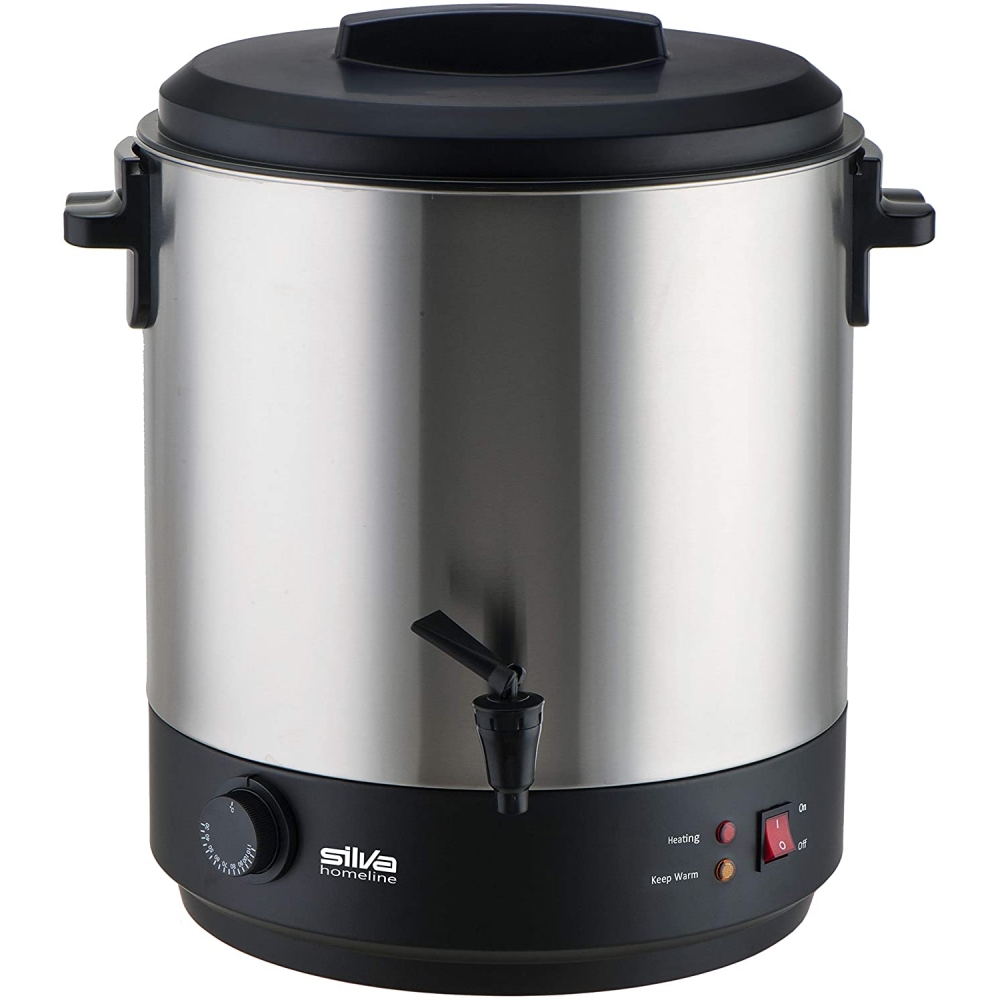 Heißgetränkeautomat aus Edelstahl, kann sowohl zum Erwärmen und Warmhalten von Getränken, Einkochen von Früchten und Gemüse oder als Kochtopf für Suppen verwendet werden.